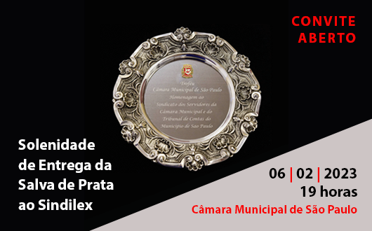 Dia (06/02/2023), a Câmara Municipal de São Paulo realizará uma Sessão Solene para a entrega da Salva de Prata ao Sindilex.