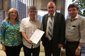 Na tarde da última segunda-feira (23), o presidente e a vice-presidente do Sindicato dos Servidores da Câmara Municipal e do Tribunal de Contas do Município de São Paulo (Sindilex), Marcos Alcyr e Sônia Alves, além do diretor Miguel Lima, entregaram ao presidente da Câmara, Antônio Donato, a pauta de reivindicações da data-base 2015. Na ocasião, também foi entregue minuta de projeto de lei que trata do teto remuneratório dos servidores.